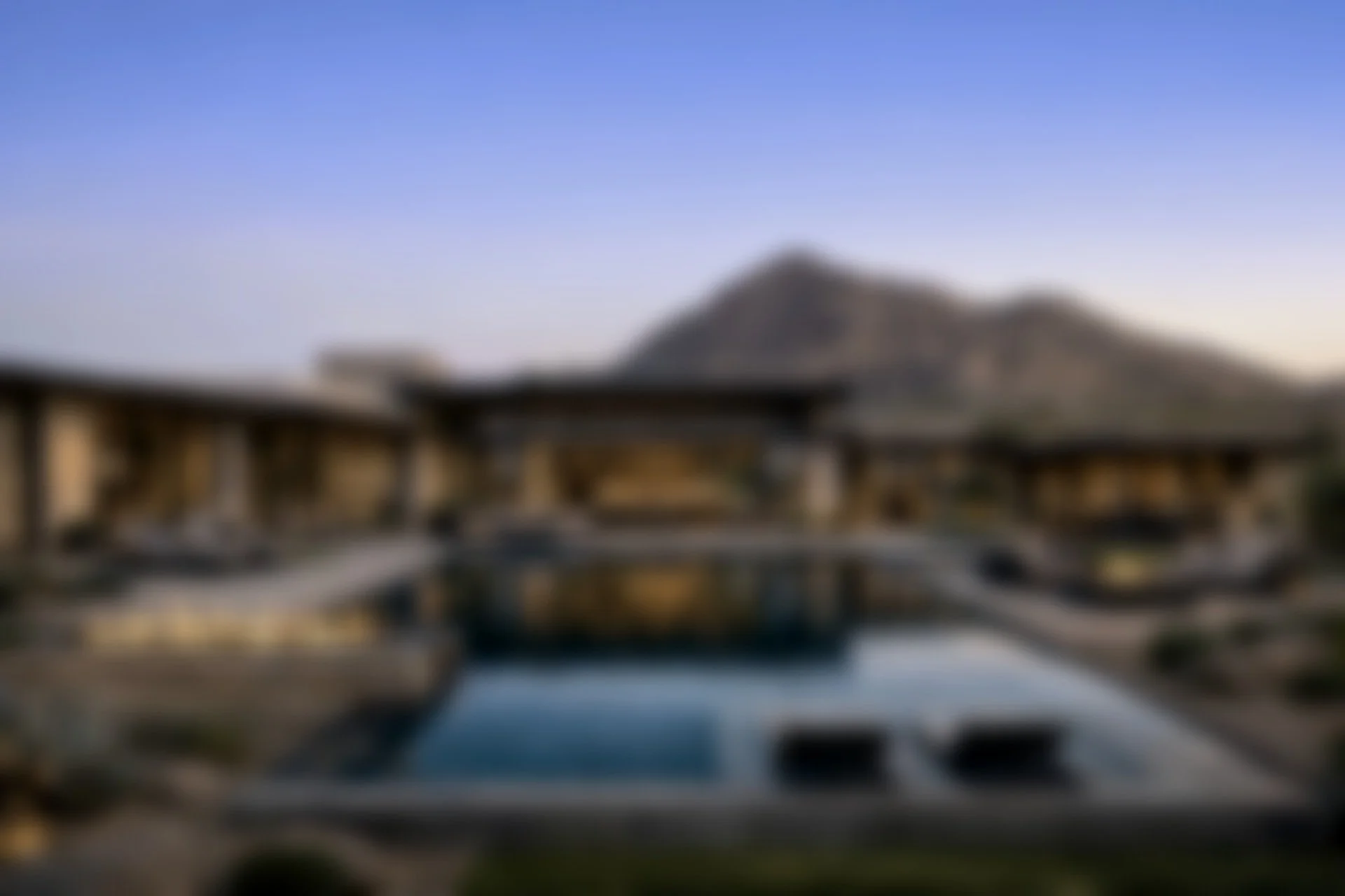 Frame the dramatic silhouette of Camelback Mountain while maintaining privacy and architectural restraint.